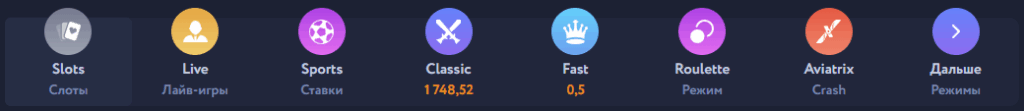 - Более 8000 игр, слоты, рулетка, лайв, ставки, скретч, моментальные выигрыши и другие